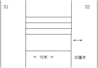場(chǎng)地器材:10米長的直線跑道若干,在跑道的兩端線(S1和S2)外30厘米處各劃一條線(圖1)。木塊(5厘米×10厘米)每道3塊,其中2塊放在S2線外的橫線上,一塊放在S1線外的橫線上。秒表若干塊,使用前應(yīng)進(jìn)行校正。