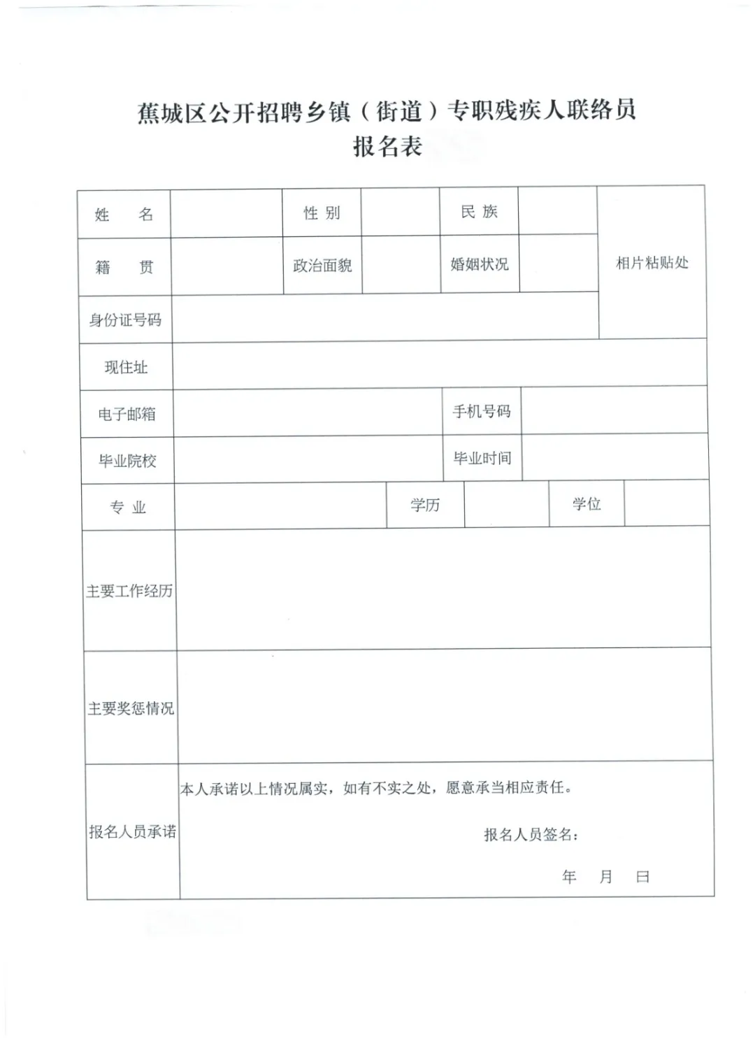 3.報(bào)名材料(1)蕉城區(qū)公開招聘鄉(xiāng)鎮(zhèn)(街道)專職殘疾人聯(lián)絡(luò)員報(bào)名表1份(見附件,報(bào)名表須附照片);(2)身份證原件及復(fù)印件1份?,F(xiàn)場(chǎng)報(bào)名時(shí)查驗(yàn)原件,報(bào)名資料必須真實(shí)準(zhǔn)確,并與原件相符。
