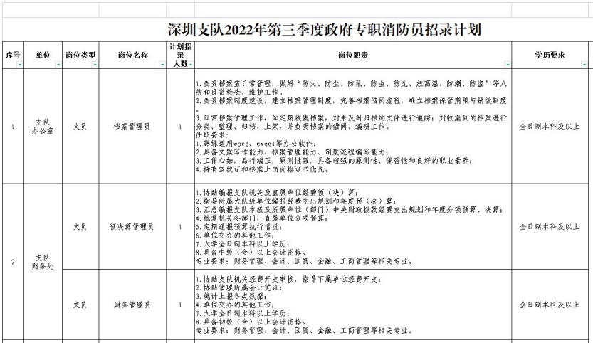 2022年第三季度深圳市消防救援支隊(duì)政府專職消防員招聘公告