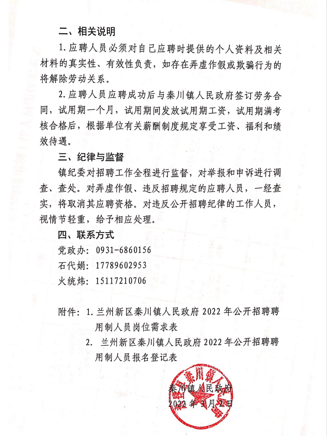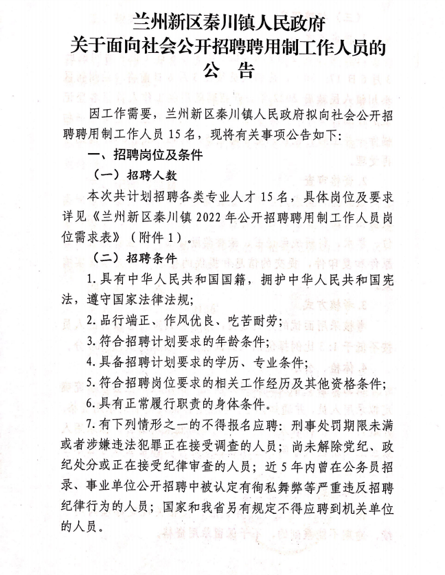 2022年蘭州新區(qū)秦川鎮(zhèn)人民政府面向社會(huì)公開招聘聘用制工作人員公告