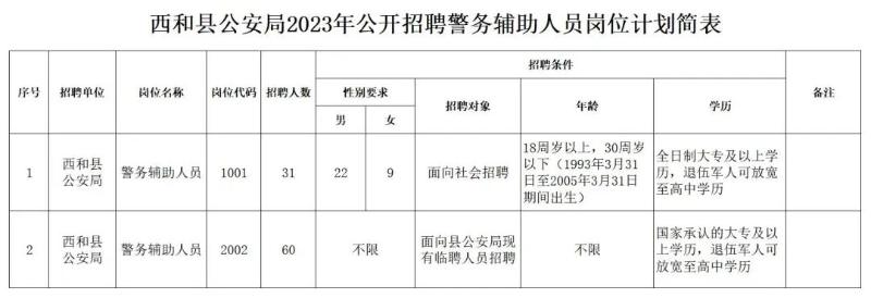 附件:1、西和縣公安局2023年公開(kāi)招聘警務(wù)輔助人員崗位計(jì)劃簡(jiǎn)表