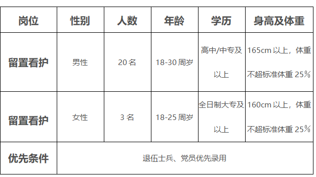 5.身心健康,體貌端正,無(wú)殘疾、無(wú)口吃、無(wú)重聽(tīng)、無(wú)紋身、無(wú)色盲、無(wú)傳染性疾病,矯正視力在4.8以上,直系親屬及本人無(wú)精神疾病病史,具有正常履行工作職責(zé)的身體條件;