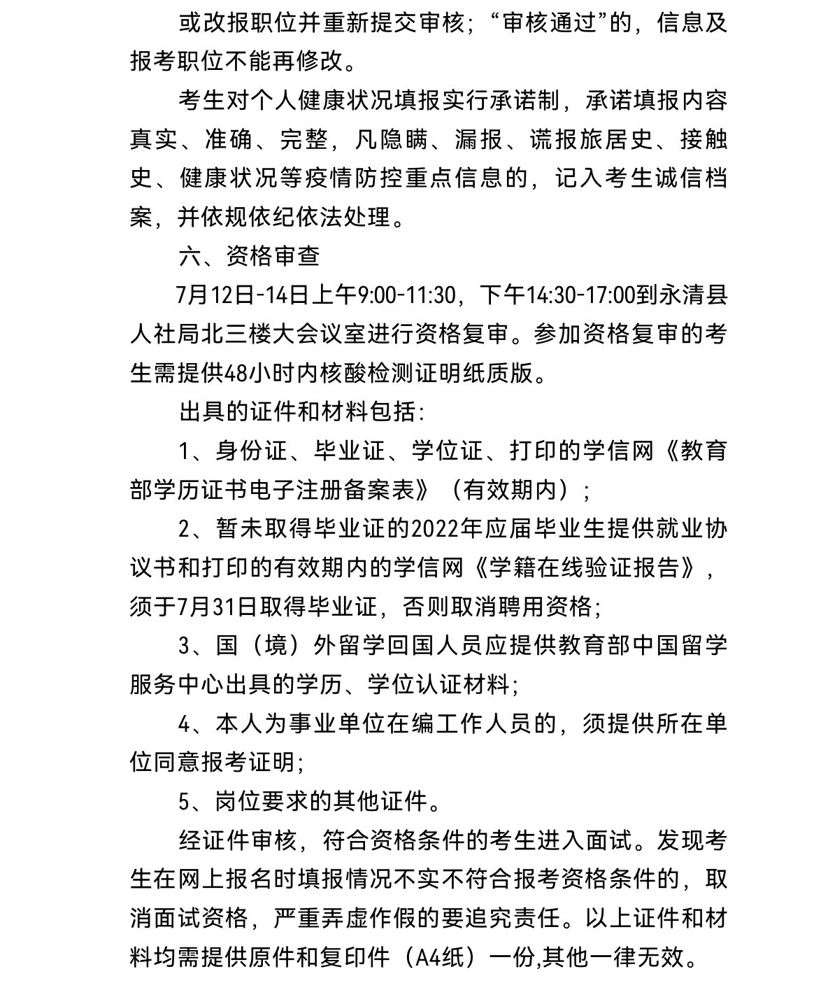 附件2:永清縣2022年事業(yè)單位公開招聘工作人員考試防疫與安全須知