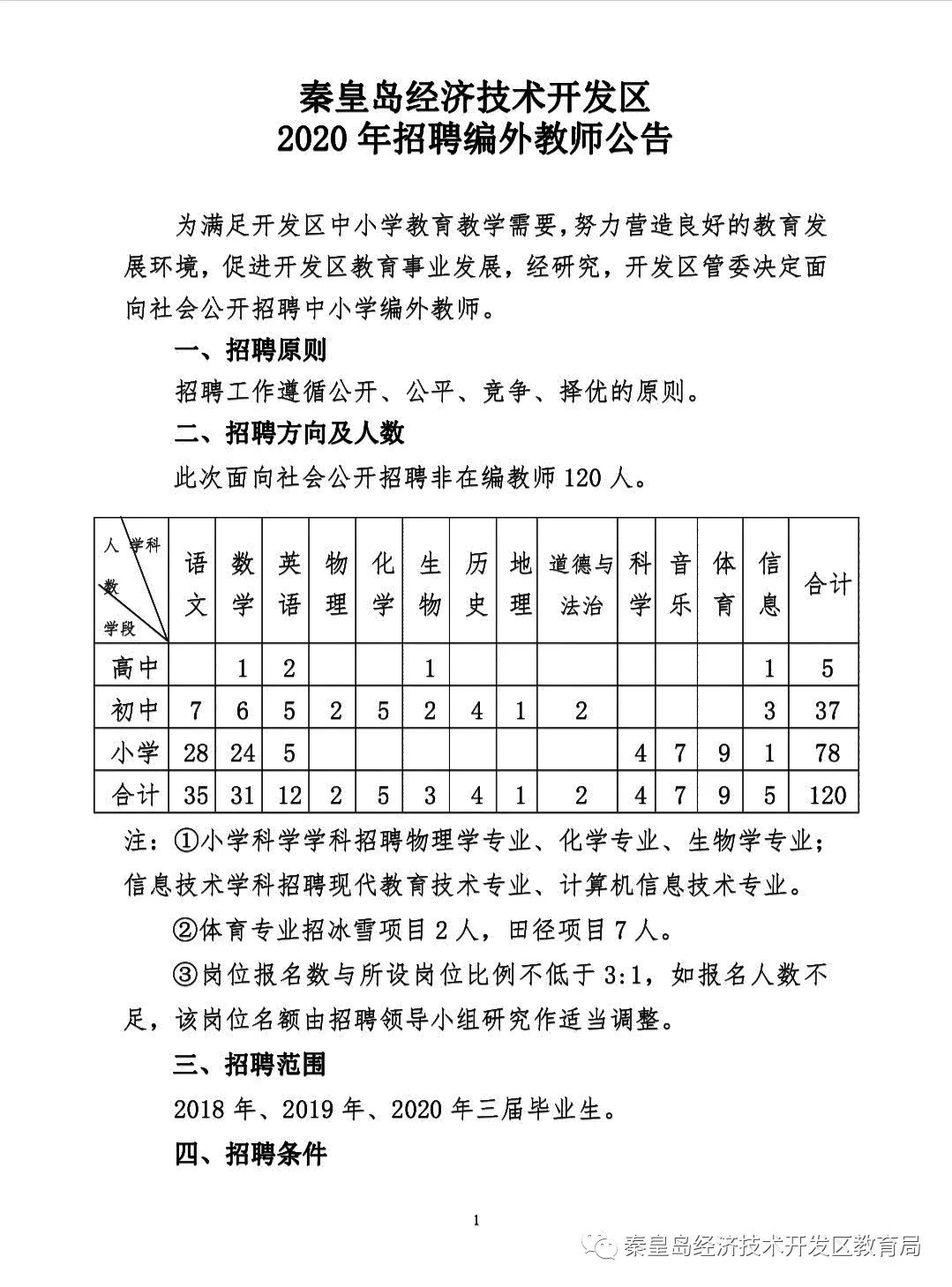 2020年秦皇島開發(fā)區(qū)招聘編外教師公告