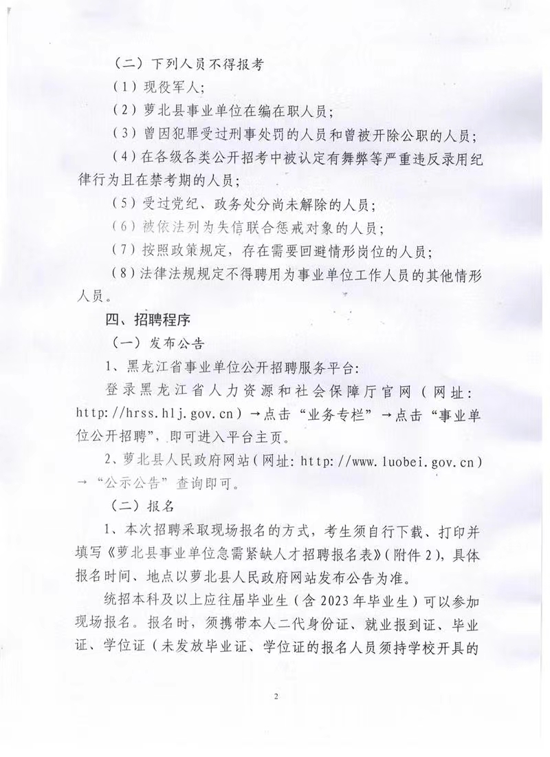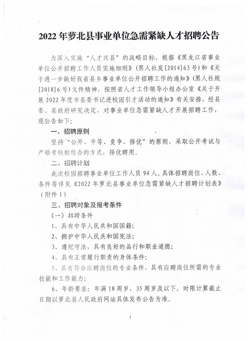 2022年鶴崗蘿北縣事業(yè)單位急需緊缺人才招聘公告