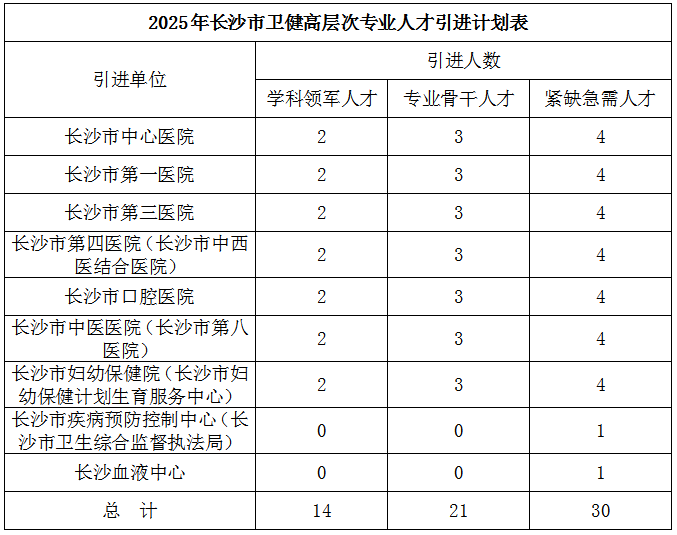 附件:2025年長(zhǎng)沙市衛(wèi)生健康高層次專業(yè)人才引進(jìn)崗位表