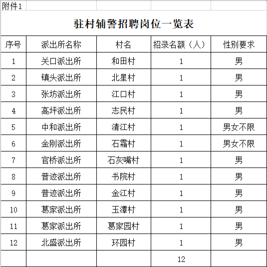 (二)輔警崗位三(駐村輔警12人,具體崗位見(jiàn)附件)