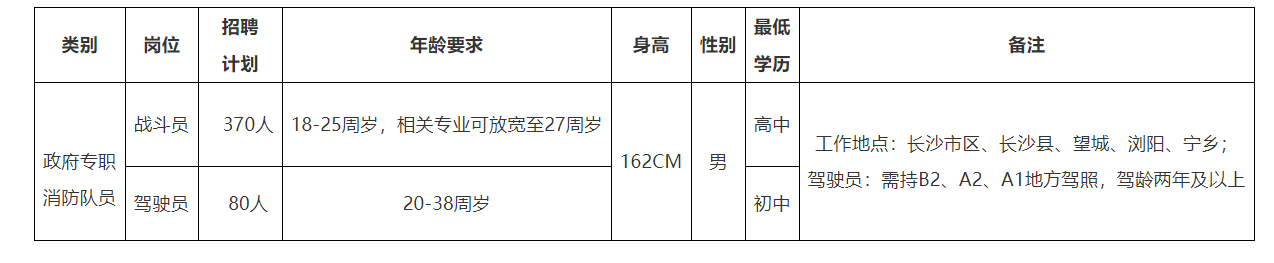 12、聘用人員與長沙市消防救援支隊簽訂勞動合同,其工資福利待遇按《關(guān)于長沙市政府專職消防員工資福利待遇的意見》(長人社發(fā)〔2020〕32號文件)執(zhí)行,社保按照企業(yè)社會保險政策繳納,住房公積金按長沙市住房公積金管理相關(guān)政策繳納。