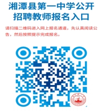 應聘人員在報名時間內掃上方“湘潭縣第一中學公開招聘教師報名入口”二維碼,下載并填報《湘潭縣第一中學2023年公開招聘教師報名登記表》(詳見附件4,以下簡稱“《報名登記表》”)后,再在報名系統(tǒng)中完成報名。