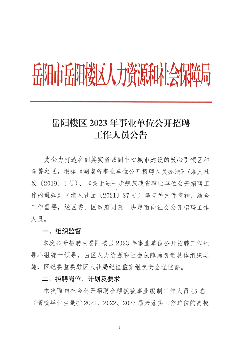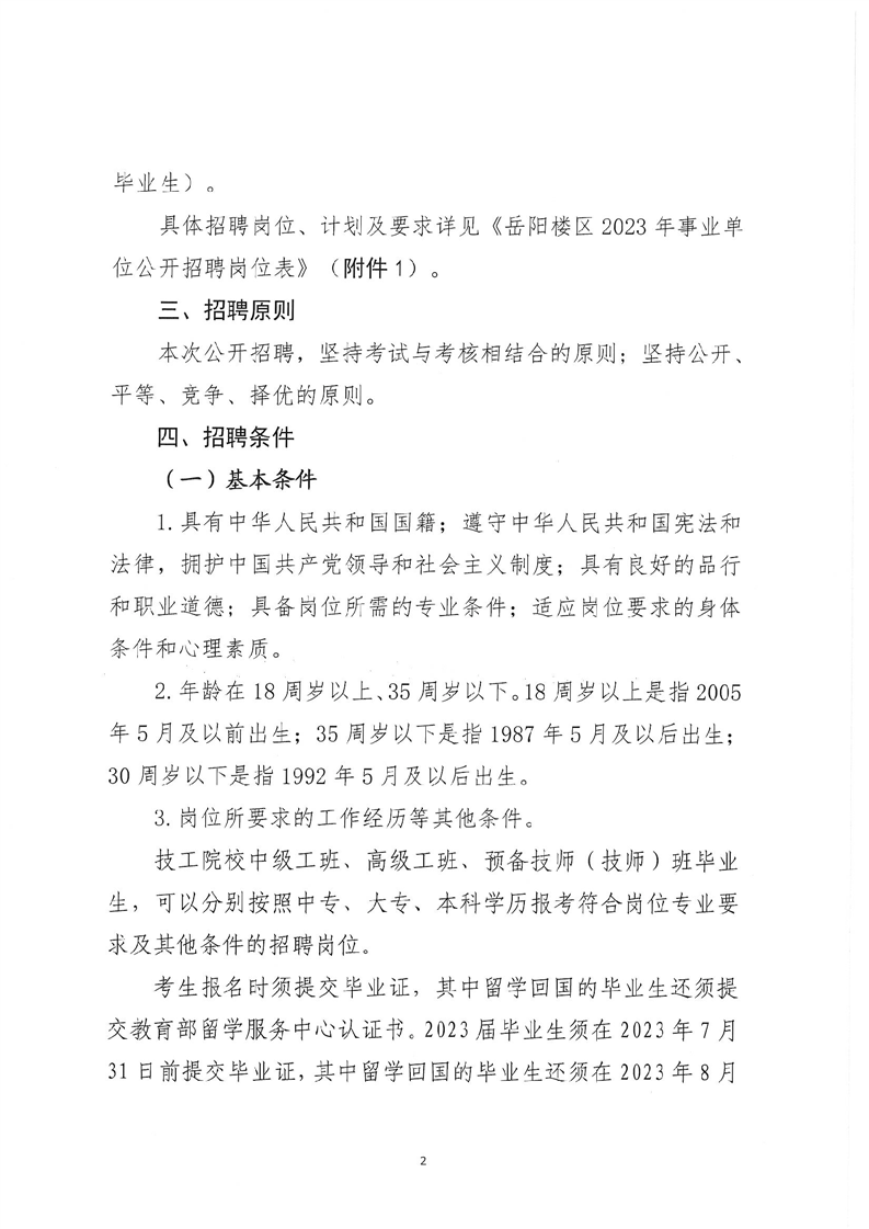 2023年岳陽市岳陽樓區(qū)事業(yè)單位公開招聘工作人員公告