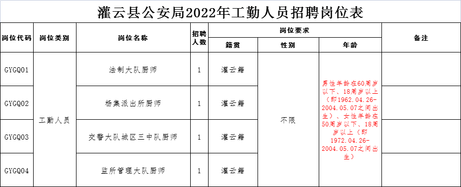 2022年連云港灌云縣公安局工勤人員招聘啟事