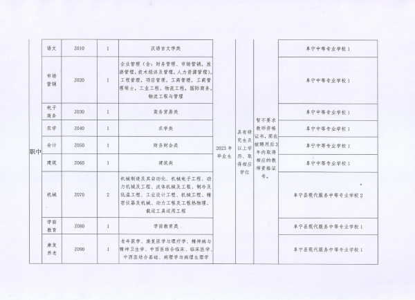 1.2023年阜寧縣教育局校園招聘崗位計劃表(本科及以上)