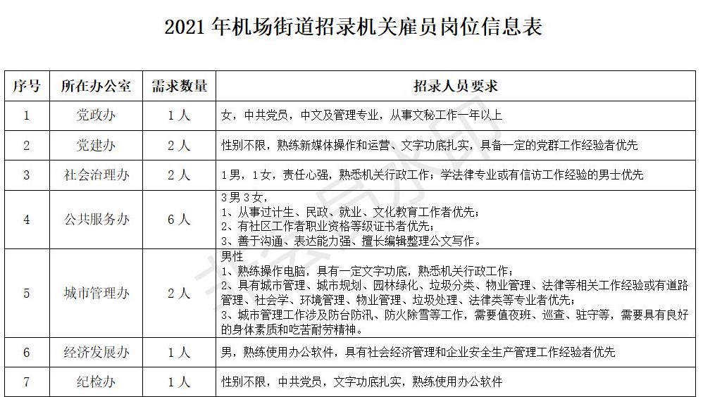 附:《2021年機(jī)場街道招錄機(jī)關(guān)雇員崗位信息表》