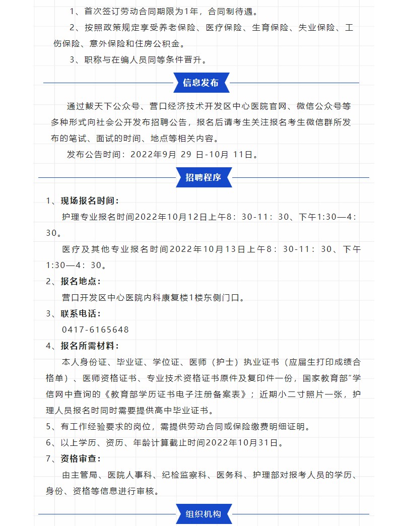 2022年營口開發(fā)區(qū)中心醫(yī)院招聘部分專業(yè)技術(shù)人員公告