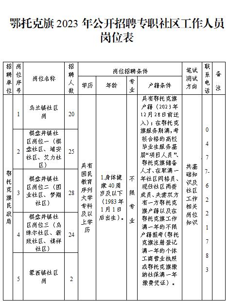 2023年鄂爾多斯鄂托克旗公開招聘專職社區(qū)工作人員簡章