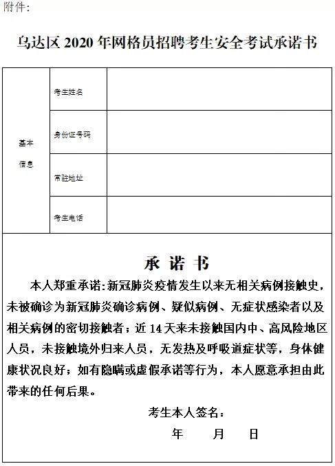 報名人員必須配戴口罩、接受體溫測量、進(jìn)行健康碼掃碼、填寫15日內(nèi)無出國或無去疫區(qū)史的保證書。