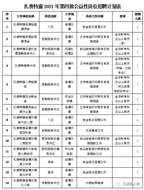附件:扎賚特旗2021年第四批公益性崗位招聘計劃表