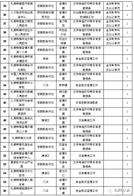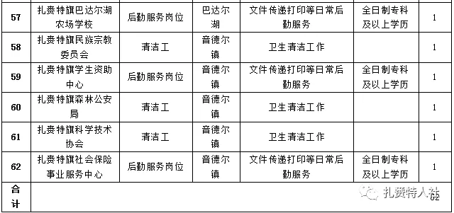 2021-10-28 10:44:02閱讀()扎賚特旗人力資源和社會保障局根據興安盟人力資源和社會保障局《關于做好2021年第五批公益性崗位開發(fā)及公開招聘工作的通知》(興人社辦發(fā)〔2021〕132號)文件要求,堅持“公開、公平、公正”原則,擬開發(fā)扎賚特旗2021年第四批公益性崗位。