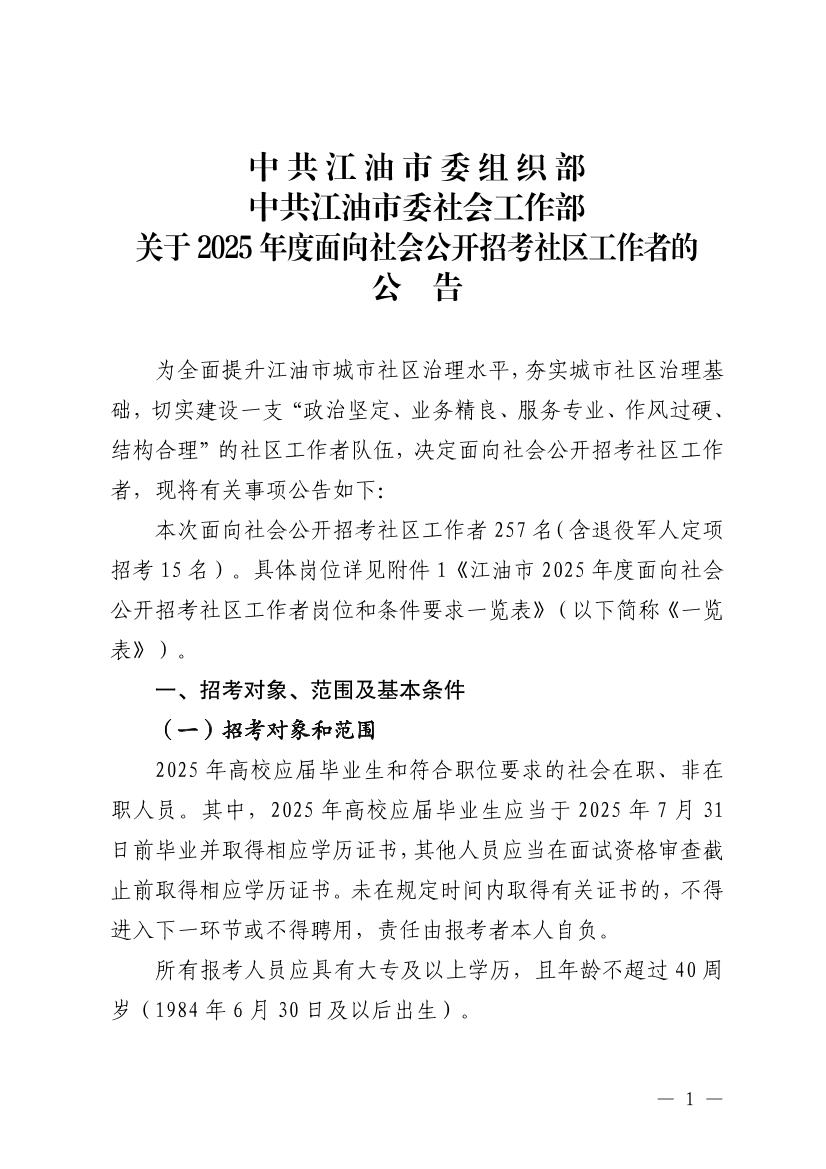 2025年綿陽江油市面向社會公開招考社區(qū)工作者公告