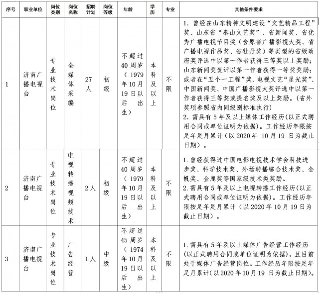 2020年濟(jì)南廣播電視臺公開招聘工作人員簡章