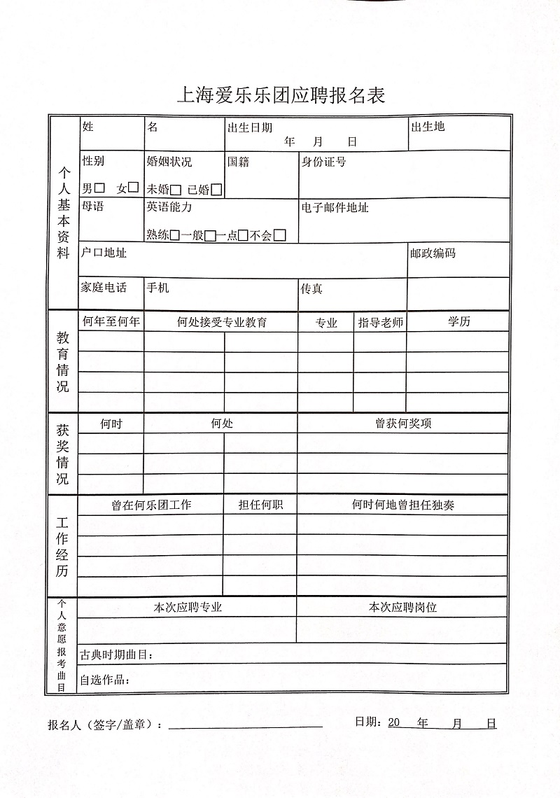 2020年上海愛(ài)樂(lè)樂(lè)團(tuán)公開(kāi)招聘工作人員公告