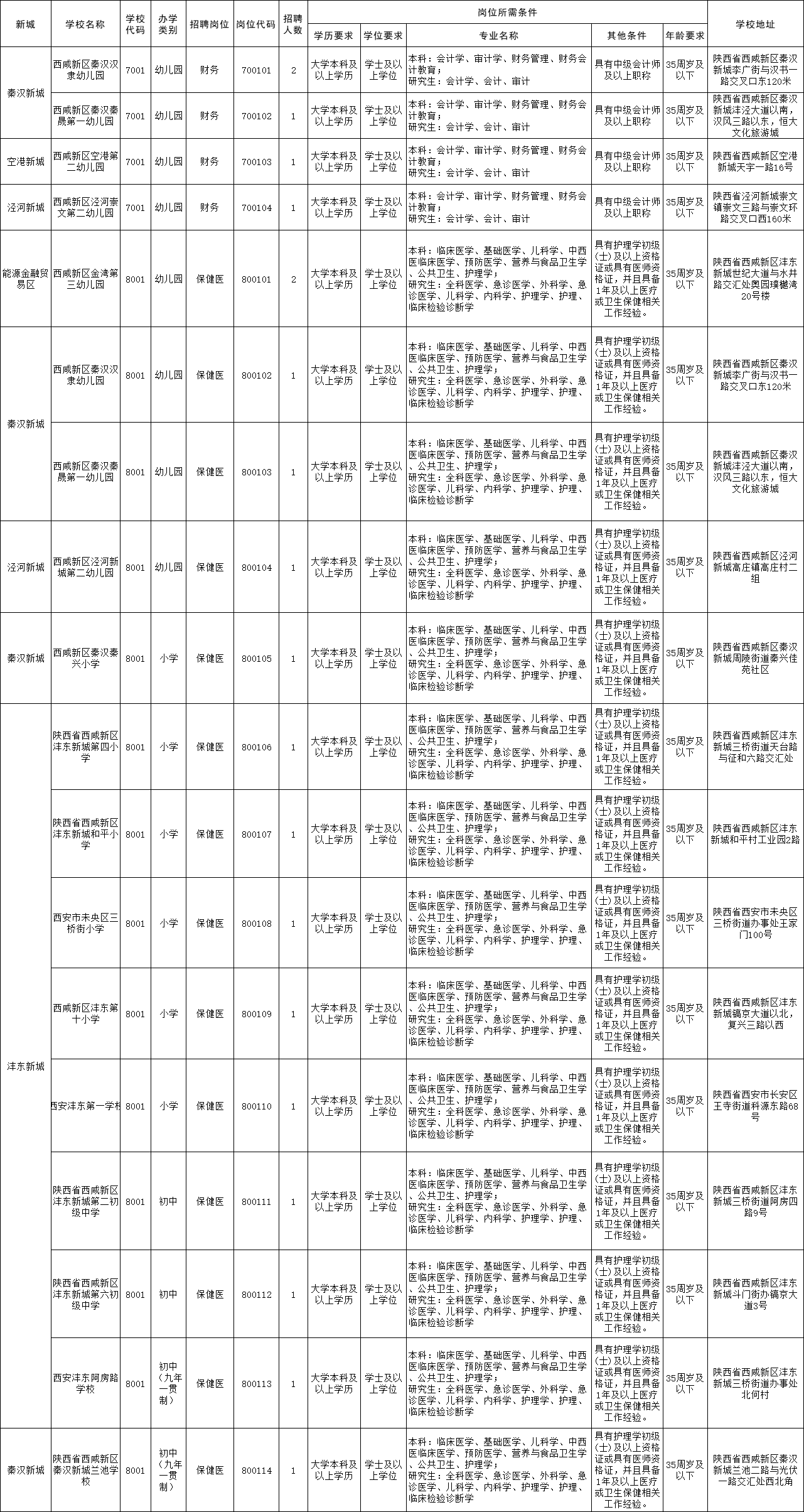 西咸新區(qū)2025年教育系統(tǒng)公開招聘崗位需求一覽表(財務、保健醫(yī)崗位20人)