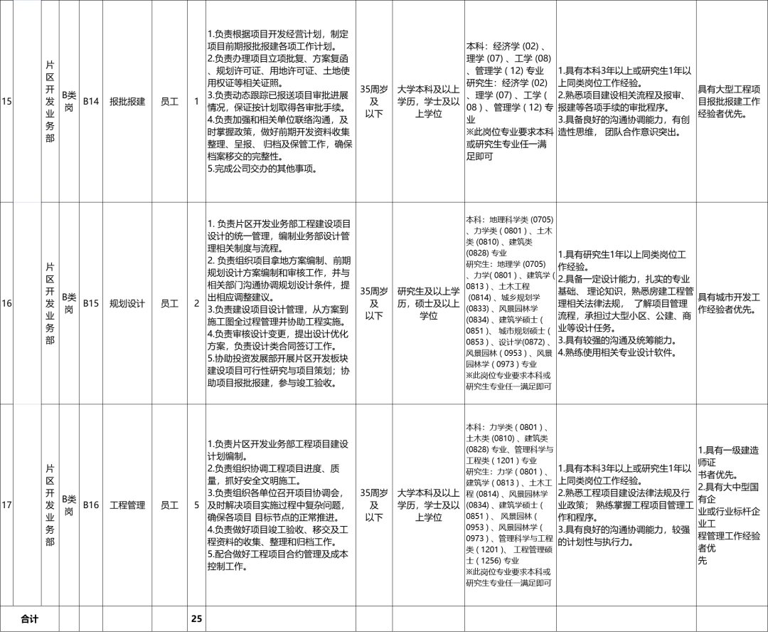 本次招聘共涉及西咸城鄉(xiāng)集團本級及子公司17個崗位共計25名人員。具體崗位職責(zé)及崗位任職條件詳見《西咸城鄉(xiāng)集團2023年社會公開招聘需求一覽表》。
