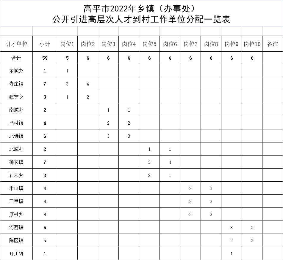 附件2:《高平市2022年鄉(xiāng)鎮(zhèn)(辦事處)公開(kāi)引進(jìn)高層次人才到村工作單位分配一覽表》