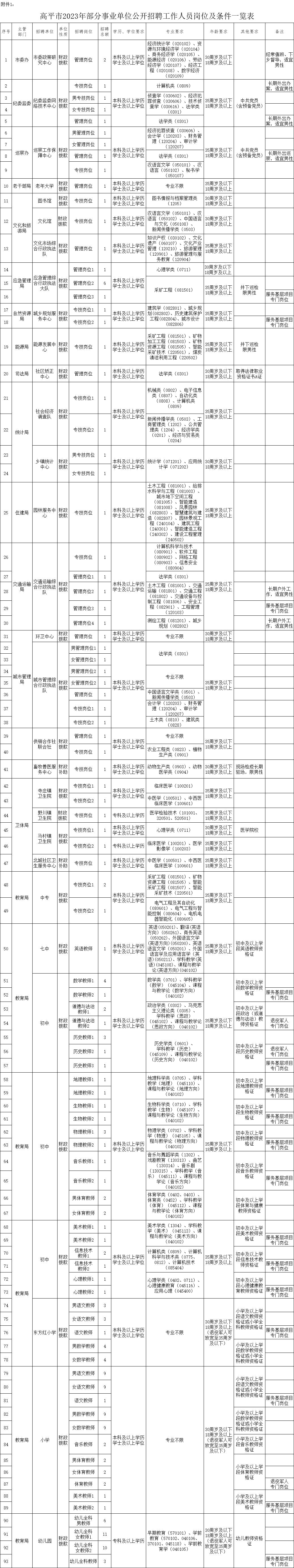 1.《高平市2023年部分事業(yè)單位公開(kāi)招聘工作人員崗位及條件一覽表》