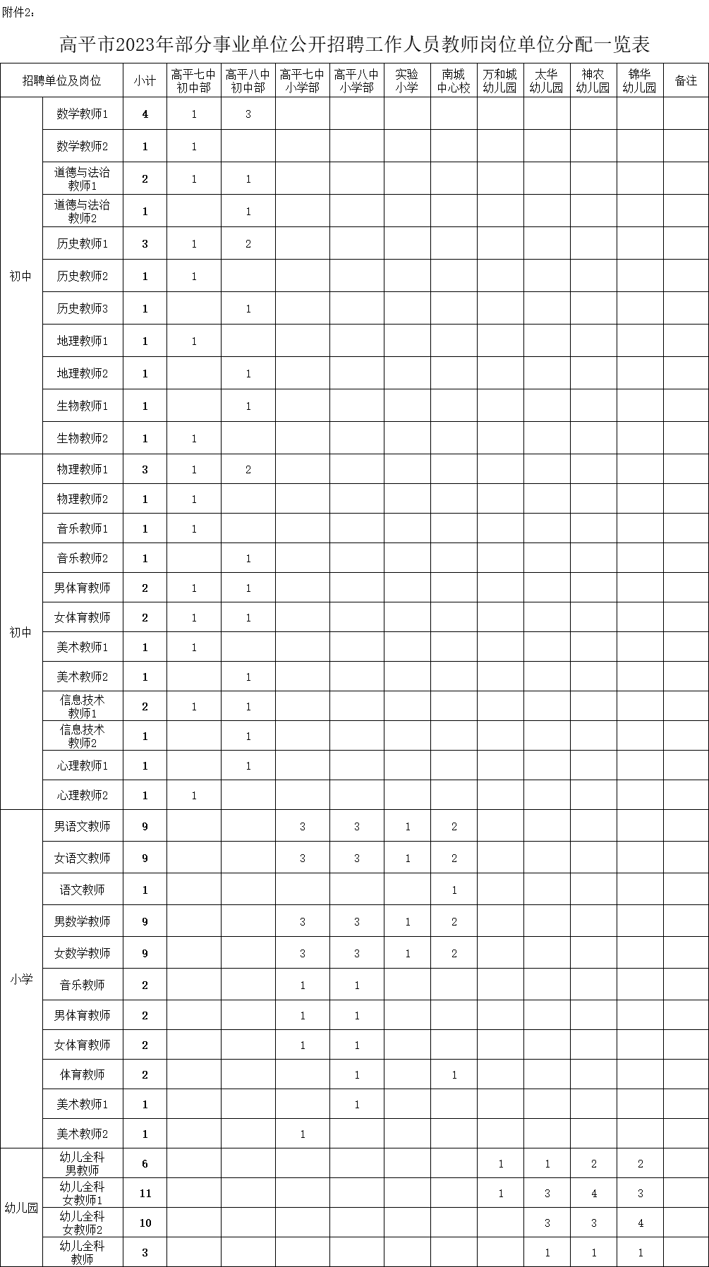 2.《高平市2023年部分事業(yè)單位公開(kāi)招聘工作人員教師崗位單位分配一覽表》