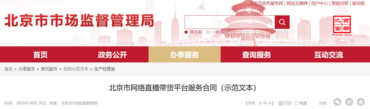 據(jù)北京市市場(chǎng)監(jiān)督管理局7月8日消息,北京市市場(chǎng)監(jiān)督管理局正式發(fā)布《北京市網(wǎng)絡(luò)直播帶貨平臺(tái)服務(wù)合同(示范文本)(試行)》。該文本系全國(guó)首個(gè) ...