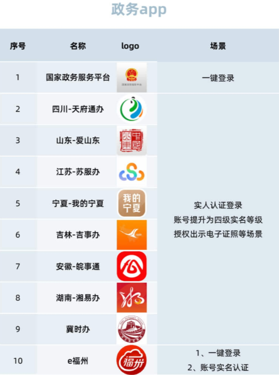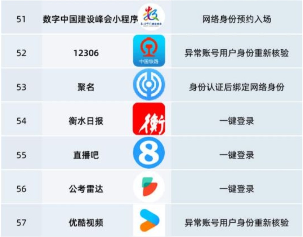 目前,國(guó)家網(wǎng)絡(luò)身份認(rèn)證公共服務(wù)正處于試點(diǎn)階段,已上線試點(diǎn)App和場(chǎng)景共67個(gè),包括部分政務(wù)App和互聯(lián)網(wǎng)App,如國(guó)家政務(wù)服務(wù)平臺(tái)、中國(guó)鐵路12306、淘寶、微信、小紅書、QQ等,附官方支持名單如下: