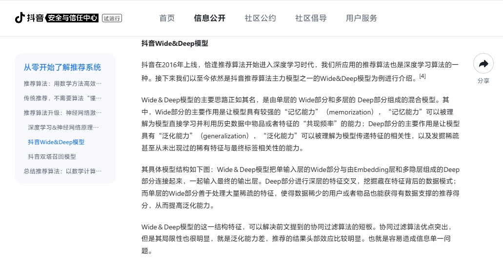 1.推進(jìn)算法透明化。2025年,抖音將建設(shè)安全與信任中心網(wǎng)站和線下公示展廳,面向社會全面深入地公開抖音的算法基礎(chǔ)運(yùn)作原理、運(yùn)營機(jī)制,也將對外公布各類熱點(diǎn)榜單的計(jì)算原理和機(jī)制,提高透明度。