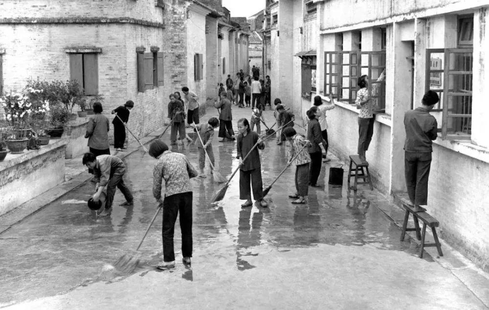 1966年1月17日,全國衛(wèi)生紅旗單位廣東省佛山市在春節(jié)前夕,又掀起一個(gè)愛國衛(wèi)生運(yùn)動(dòng)的高潮。圖為佛山市滘邊街居民在洗刷街道。新華社記者 李開遠(yuǎn) 攝