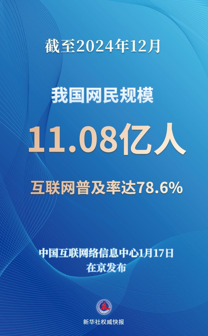 中國網(wǎng)民規(guī)模達11.08億人,互聯(lián)網(wǎng)普及率升至78.6%