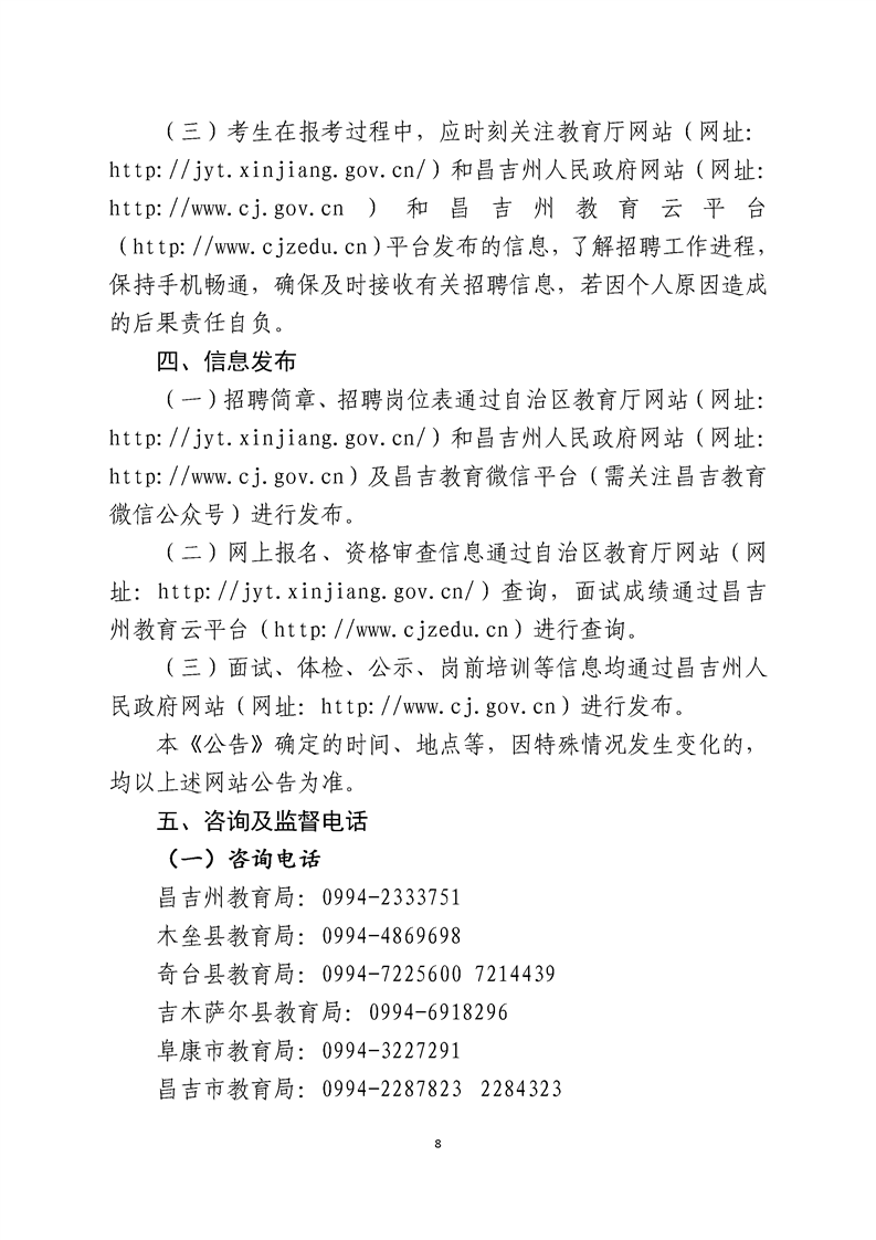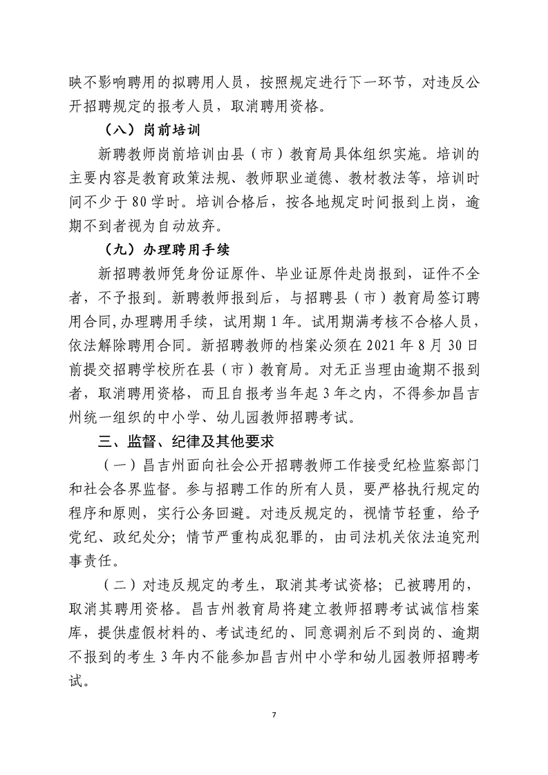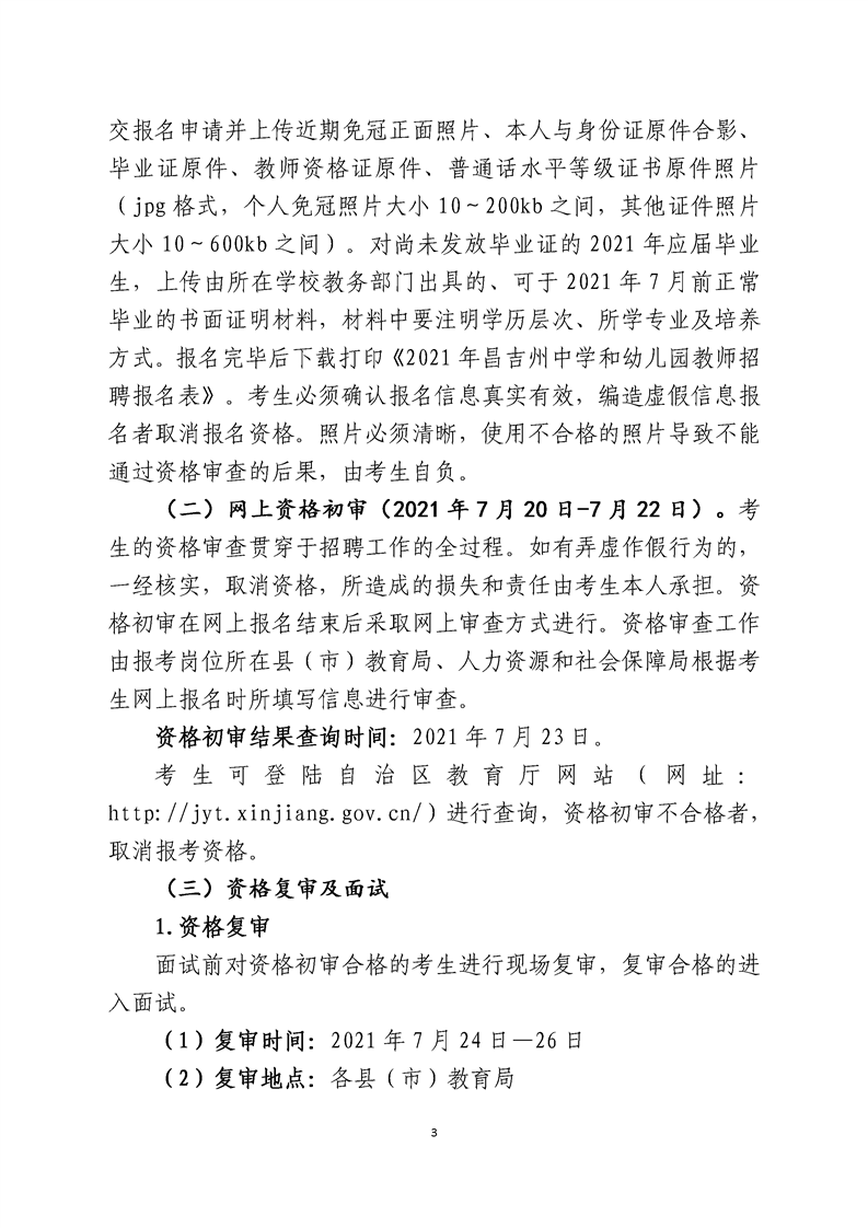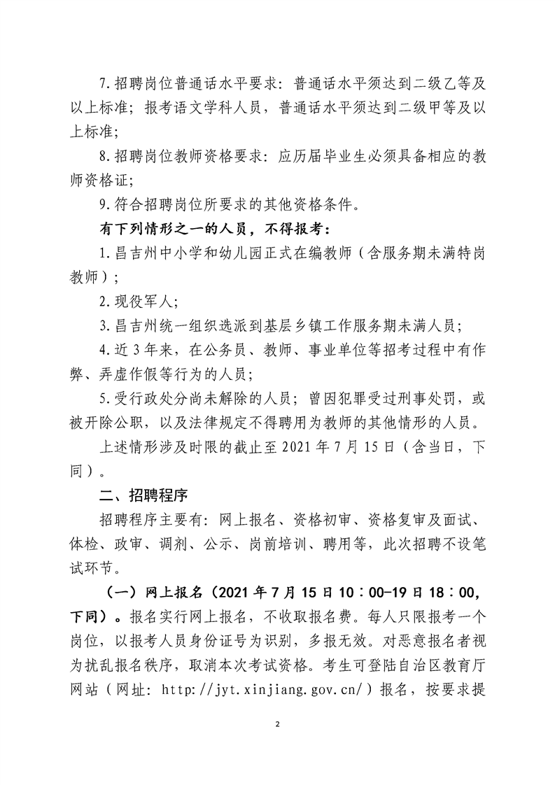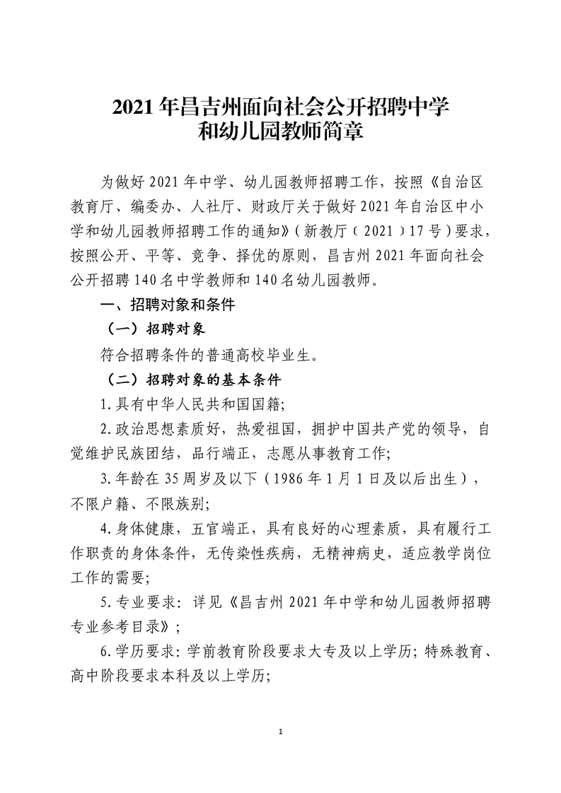 2021年昌吉州面向社會公開招聘中小學和幼兒園教師簡章