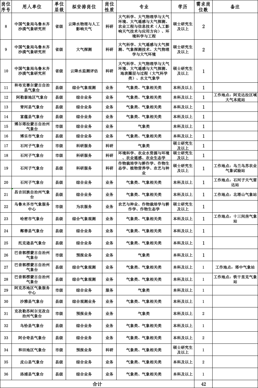 2024-03-12 17:09:00閱讀()新疆維吾爾自治區(qū)氣象局根據(jù)《氣象部門事業(yè)單位公開招聘人員管理辦法》,為加強新疆氣象人才隊伍建設(shè),滿足新疆氣象事業(yè)發(fā)展需要,現(xiàn)面向各高等院校、科研院所應(yīng)屆畢業(yè)生招聘事業(yè)編制工作人員,有關(guān)事項公告如下: