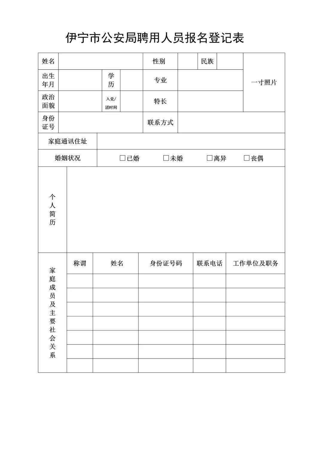 3、報(bào)名方式:關(guān)注“伊寧公安”微信公眾號(hào),下載《伊寧市公安局聘用人員報(bào)名登記表》,政審合格后持本人身份證、畢業(yè)證、戶口本、退伍證復(fù)印件至伊寧市公安局現(xiàn)場報(bào)名。