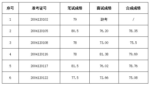 根據(jù)《含山縣應(yīng)急管理局公開招聘政府購買服務(wù)工作人員公告》要求,現(xiàn)將本次面試成績與筆試成績按照5:5的比例進行合成,合成成績公示如下,公示期限5天, 自2020年4月20日至2020年4月24日。如有異議,請來電反映。