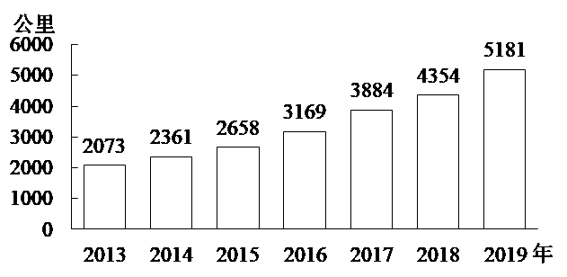 2013~2019年全國地鐵運營線路長度