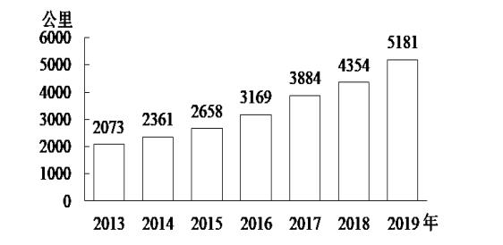 2013~2019年全國(guó)地鐵運(yùn)營(yíng)線路長(zhǎng)度