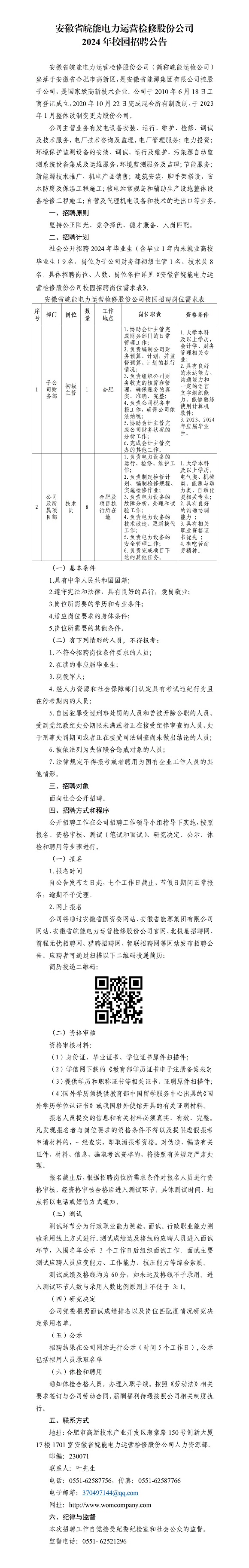 2024年安徽省皖能電力運營檢修股份公司校園招聘公告