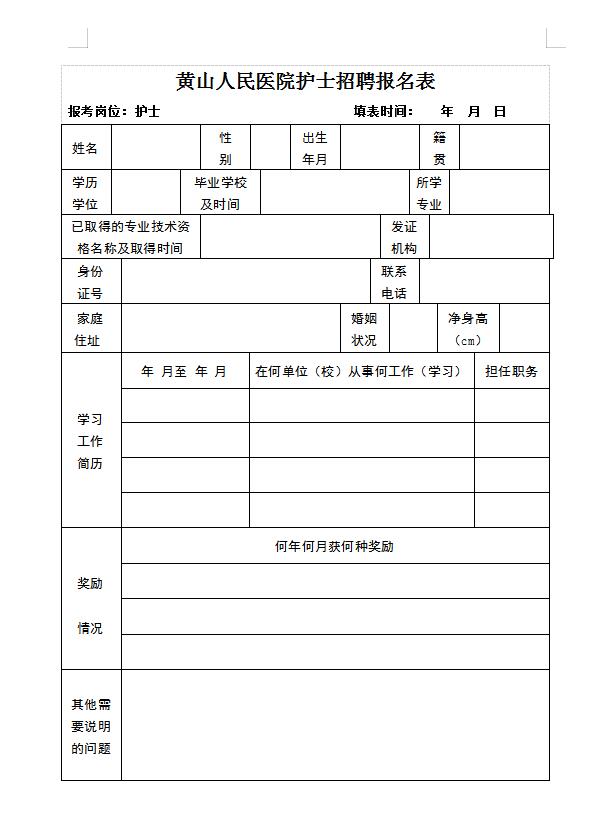 三、報名方式:現(xiàn)場報名,報名者請到護理部(行政樓四樓)填寫報名表,提交個人簡歷、畢業(yè)證書、相關(guān)的資格證書、身份證的原件和復印件各1份,原件驗后當場退還,復印件留存。