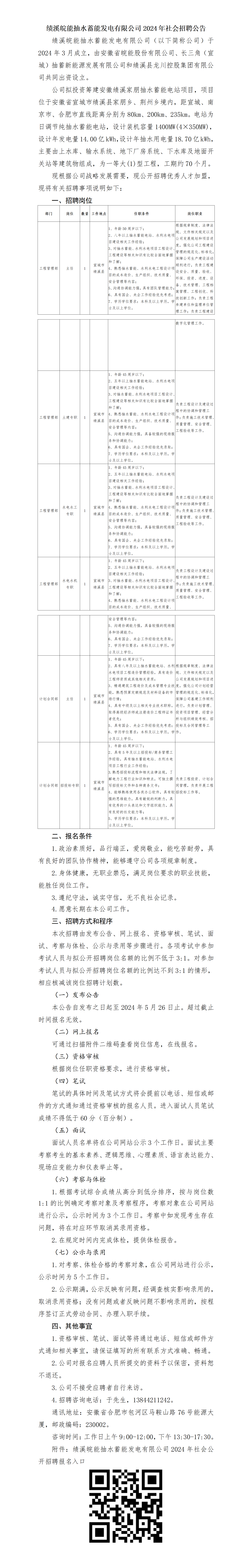 2024年宣城績溪皖能抽水蓄能發(fā)電有限公司社會招聘公告