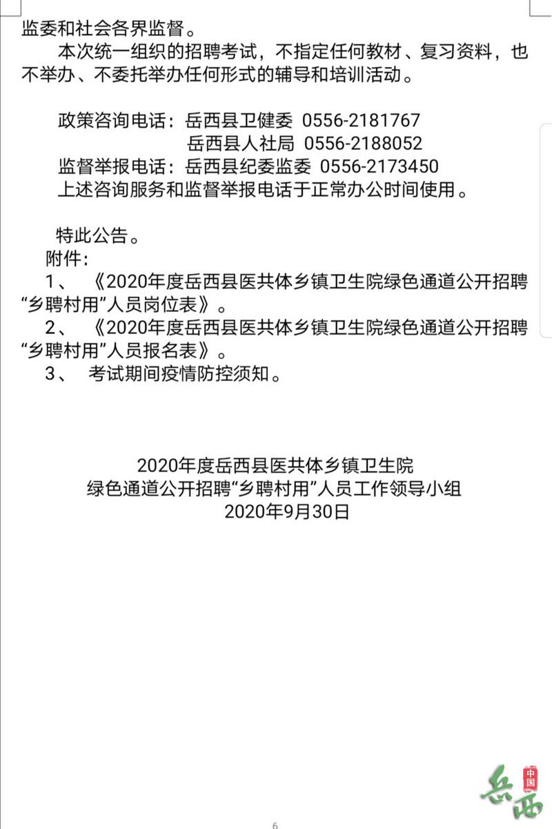 2020年安慶岳西縣醫(yī)共體鄉(xiāng)鎮(zhèn)衛(wèi)生院綠色通道公開招聘“鄉(xiāng)聘村用”人員公告