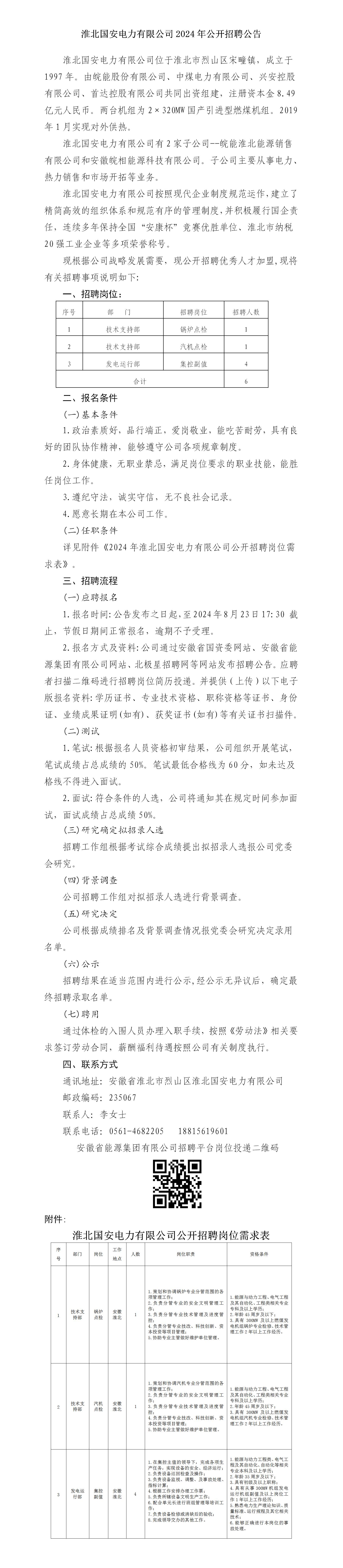 淮北國安電力有限公司有⒉家子公司--皖能淮北能源銷售有限公司和安徽皖相能源科技有限公司。子公司主要從事電力、熱力銷售和市場開拓等業(yè)務(wù)。