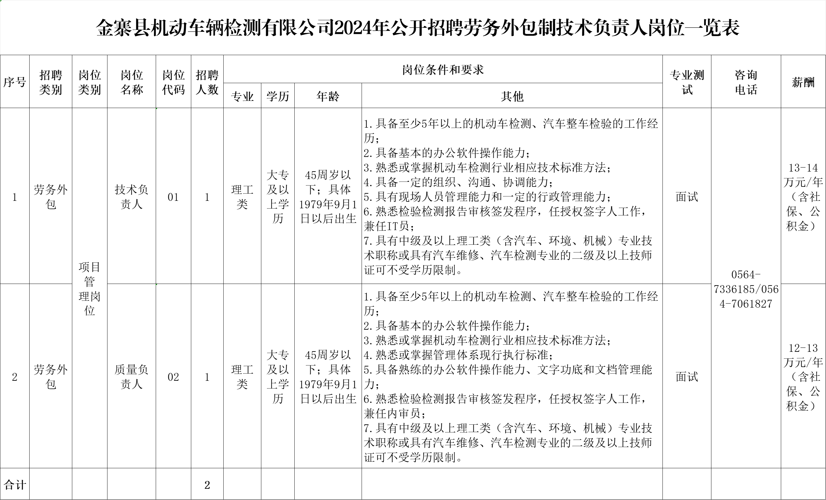 因業(yè)務(wù)發(fā)展需要,面向社會公開招聘勞務(wù)外包制技術(shù)負(fù)責(zé)人2名: