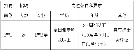 9、崗位資格證書:具有護(hù)士資格證書,含截止報(bào)名時(shí)已通過考試,能提供成績(jī)合格證明者。