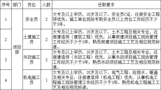 蚌埠城投建工有限公司是蚌埠市城市投資控股集團(tuán)有限公司全資子公司,成立于2022年7月,注冊(cè)資本5000萬(wàn)元。具有建筑工程施工總承包、市政公用工程施工總承包雙二級(jí)資質(zhì),主營(yíng)業(yè)務(wù)包括建設(shè)工程施工、園林綠化工程施工、電氣安裝服務(wù)、施工專業(yè)作業(yè)、建筑勞務(wù)分包、市政設(shè)施管理、建筑材料經(jīng)營(yíng)、銷售等。結(jié)合實(shí)際工作需要,經(jīng)研究決定,招聘勞務(wù)派遣8人。