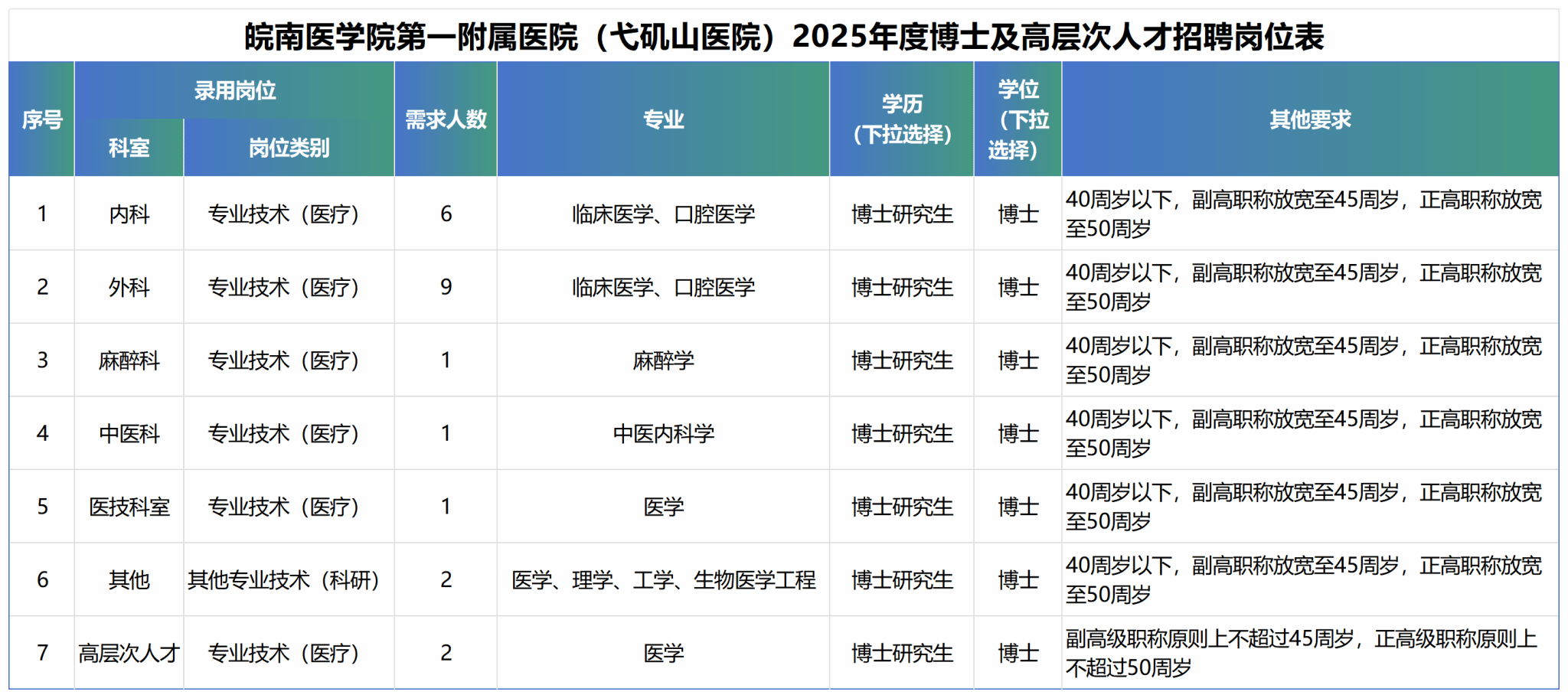 2025年蕪湖皖南醫(yī)學(xué)院第一附屬醫(yī)院(弋磯山醫(yī)院)公開招聘博士及高層次人才預(yù)公告